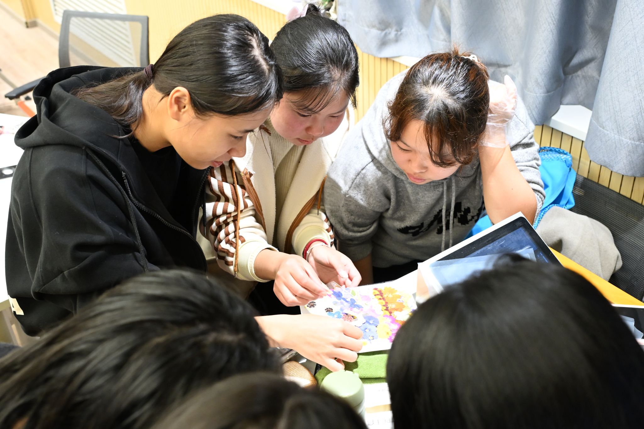 在制作环节,同学们分组进行琥珀制作,大家分工协作,志愿者现场指导同学们如何做好“胶水量控制”“标本固定角度”。有的小组精心设计,将干花与蝴蝶标本巧妙搭配,让琥珀仿佛封存了一个微观的梦幻花园;有的小组则发挥奇思妙想,用不同形状的模具打造出独一无二的琥珀造型,每一件作品都承载着大家对新环境的期待与对大学生活的美好憧憬。活动现场欢声笑语不断,随着一件件精美的琥珀标本在同学们手中诞生,大家的脸上洋溢着自豪与满足的笑容。
