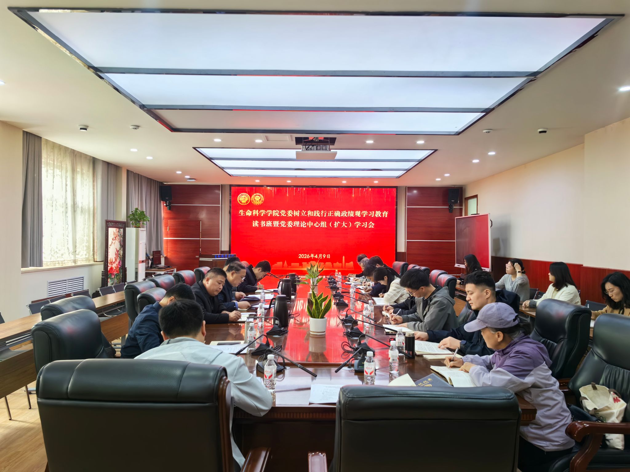 为深入学习贯彻习近平总书记关于树立和践行正确政绩观的重要论述,全面落实党的二十大和二十届历次全会精神,推动“十五五”开好局起好步,4月9日上午,生命科学学院党委在学院B201会议室举行树立和践行正确政绩观学习教育读书班暨党委理论中心组(扩大)学习会。学院党委委员、班子成员、各系室主任、党支部书记等参加会议。会议由学院党委副书记宋永鹏主持。