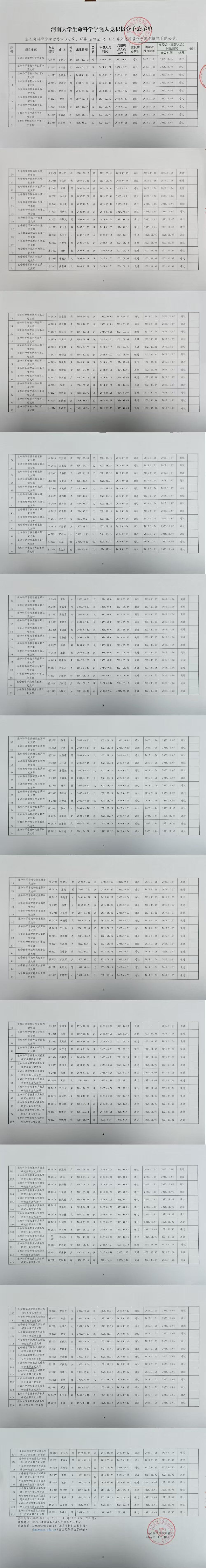 河南大学生命科学学院下半年入党积极分子公示单