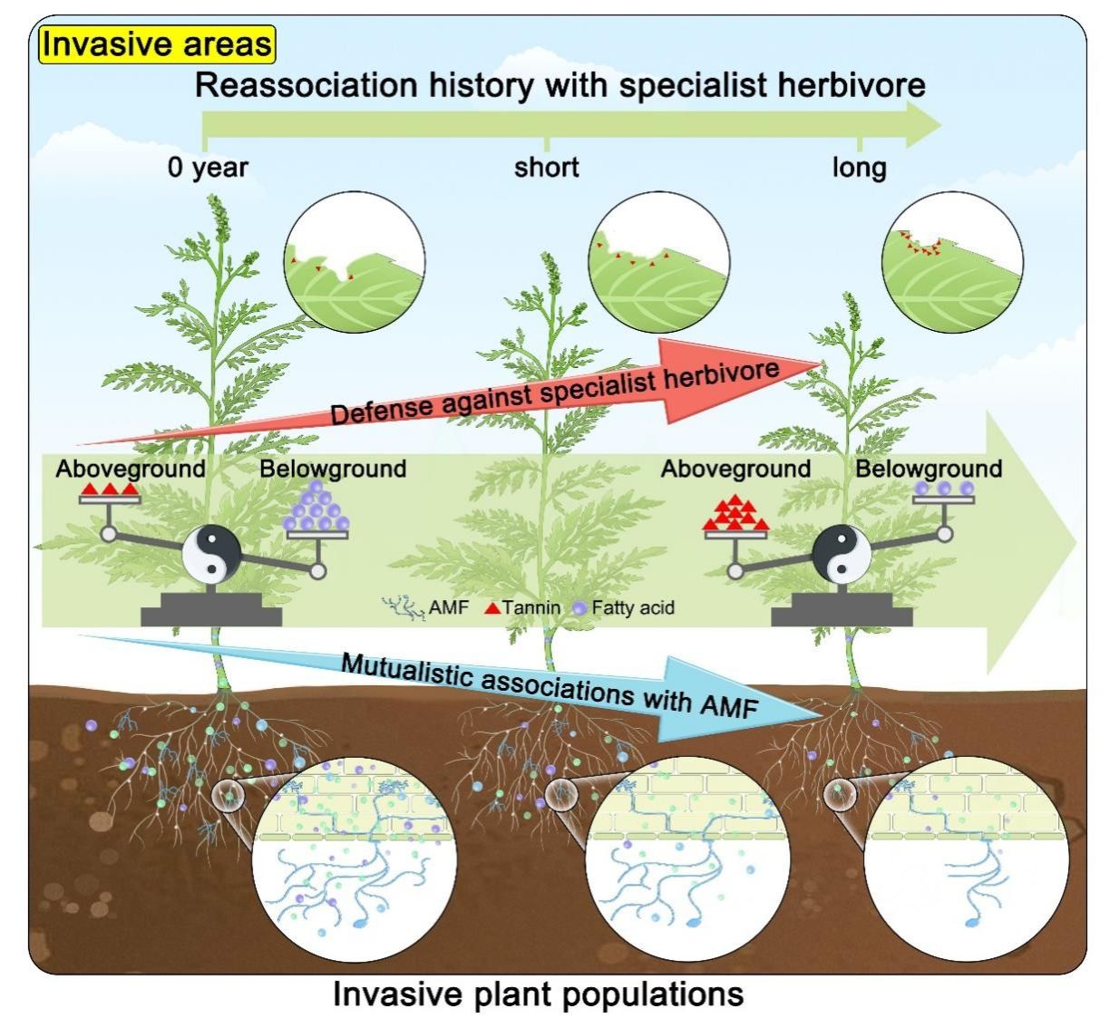 外来植物成功入侵的原因一直是植物入侵领域的热点。入侵地逃离专食性昆虫(天敌逃逸假说)及入侵植物与地下微生物的共生关系增强(共生促进假说)被认为是外...